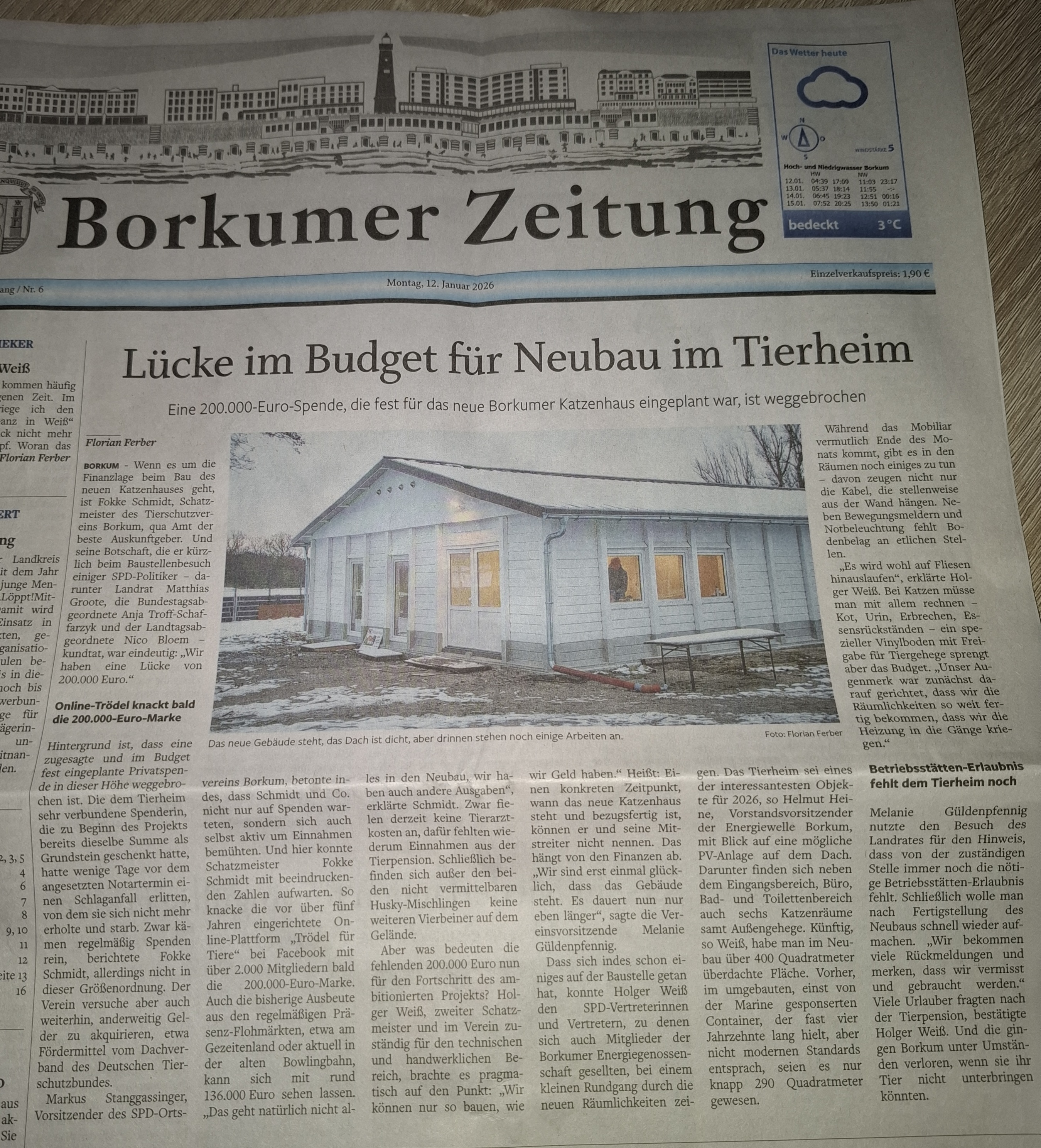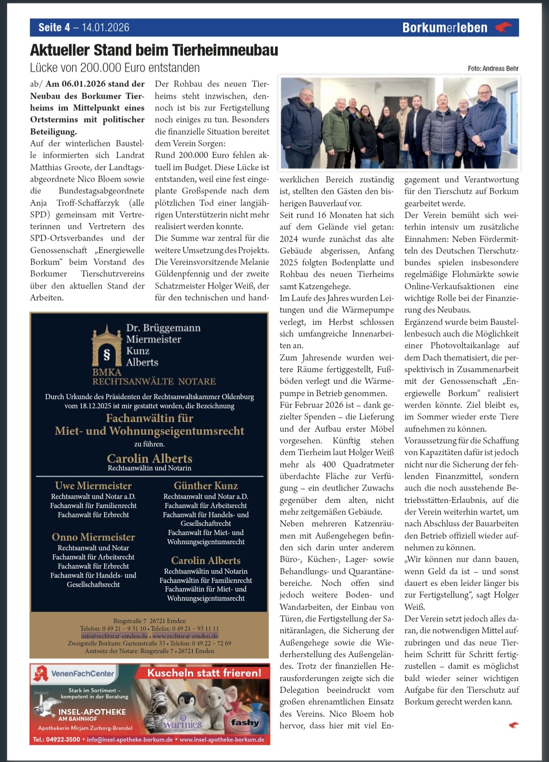 2026 Aktueller Stand beim Tierheimneubau 14.01.2026 | Borkumerleben Lücke im Budget für Neubau im Tierheim 12.01.2026 | Borkumer Zeitung 2025 Alles für die Tiere! Herbst 2025 | Burkana No. 94 Bau des Borkumer Tierheims schreitet voran - trotz Herausforderungen September 2025 | Borkum Aktuell September 2025 Neues Katzenhaus nimmt Gestalt an 03./04.06.2025 | Borkumer Zeitung Neubau des Tierheims Borkum - Fortschritte und Herausforderungen April 2025 | Borkum Aktuell April 2025 2024 Borkums Katzen bekommen mehr Platz 17.10.2024 | Borkumer Zeitung Neubau des Borkumer Tierheims steht kurz bevor Oktober 2024 | Borkum Aktuell Oktober 2024 Maffay, Hallervorden und Co. helfen mit 18.06.2024 | Emdener Zeitung KünstlerInnen bemalen und signieren Dosen Juni 2024 | Borkum Aktuell Juni 2024 Tierheim Borkum Mai 2024 | Borkum Aktuell Mai 2024 2023 Viele Herzen für viele Tiere Sommer 2023 | Burkana No. 83 Donna sucht ein liebevolles Zuhause April 2023 | Borkum Aktuell Suche nach Tierfriedhof geht weiter 15.02.2023 | Borkumerleben Der Tierschutzverein der Insel sorgt sich seit 1964 um die Belange von Hund, Katze und Co. in Not 26.01.2023 | Borkumer Zeitung 2022 Tierheim Aktuell Oktober 2022 | Borkum - Aktuell Baugenehmigung erteilt Oktober 2022 | Borkum Aktuell Einladung zur Ordentlichen Mitgliederversammlung November 2022 | Keanu sucht ein liebevolles Zuhause. Mai 2022 | Borkum Aktuell Balu sucht ein liebevolles Zuhause. Juni 2022 | Borkum Aktuell Freiwillige Helfer für den Außenbereich gesucht. Juli 2022 | Borkum Aktuell Mitgliederversammlung Tierschutzverein Borkum e.V. Dezember 22 - Januar 23 | Borkum - Aktuell Tierschutzverein Borkum e.V. zu Gast beim Bürgermeister August 2022 | Borkum - Aktuell Borkumer Kitten suchen ein liebevolles Zuhause. April 2022 | Borkum Aktuell Wie Promis dem Tierschutzverein Borkum helfen 22.11.2022 | Borkumer Zeitung Außerordentliche Mitgliederversammlung Tierschutzverein Borkum e.V. 18.05.2022 | Borkumerleben Der Tierschutzverein Borkum sammelt Spenden - Wie ist der aktuelle Stand? 18.01.2022 | Borkumer Zeitung Tierschutzverein muss sich in Geduld üben 12.08.2022 | Borkumer Zeitung Borkum und das Problem wilder Katzen 04.10.2022 | TIERE Der Tierschutzverein der Insel appelliert, dass herrenlose Streuner kastriert werden - • und nicht gefüttert 2021 Moin, ich bin Nala... September 2021 | Borkum Aktull Wir suchen ein liebevolles Zuhause. Oktober 2021 | Borkum Aktuell Großer Indoor-Flohmarkt November 2021 | Borkum Aktuell Borkumer Kitten suchen ein liebevolles Zuhause. November 21 | Borkum Aktuell Neubau Tierheim Kann der Verein das stemmen? März 2021 | Borkum Aktuell Neue Holzhütte am Tierheim Borkum Mai 2021 | Borkum Aktuell Online-Flohmarkt auf Facebook für den Neubau des Tierheims Borkum Januar - Februar 2021 | Borkum Aktuell Moin, ich bin Stupsi! August 2021 | Borkum Aktuell Das Borkumer Tierheim geht neue Wege für den Neubau der benötigten Anlage 29.03.2021 | Borkumer Zeitung Das Borkumer Tierheim will ein neues Katzenhaus bauen und hat eine besondere Aktion gestartet 17.09.2021 | Borkumer Zeitung Trödeln für das Tierheim Borkum 13.01.2021 | Borkum Aktuell Borkumer Einrichtung hat viele Baustellen - jetzt kommt finanzielle Hilfe vom Bund 12.07.2021 | Borkumer Zeitung 2020 T-Shirt-Verkauf zugunsten des Tierheims Borkum 14.10.2020 | Borkum Aktuell Finanzieller Kraftakt für den Tierschutzverein Borkum e.V. Dezember 2020 - Januar 2021 | Borkum Aktuell Ein neues Dach für das Tierheim Borkum Januar - Februar 2020 | Borkum Aktuell Kreativmarkt der Reha Klinik Borkum Riff November 2020 | Borkum Aktuell 2019 Teils mehr Gasttiere als Platz 21.10.2019 | Borkumer Zeitung Ein Vormittag im Tierheim Oktober 2019 | Borkum Aktuell Moin, ich bin Zilla! Mai 2019 | Borkum Aktuell Moin, ich bin Red! Juni 2019 | Borkum Aktuell Moin, ich bin Carina! Juli 2019 | Borkum Aktuell Gewinnsparen bei der Borkumer Volksbank Januar / Februar 2019 | Borkum Aktuell Moin, ich bin Lukas! Dezember 19 - Januar 20 | Borkum Aktuell Moin, ich bin Sam! April 2019 | Borkum Aktuell Tag der offenen Tür im Tierheim Borkum 17.07.2019 | Borkumerleben Spende der Ortshandwerkerschaft Borkum an den Tierschutzverein Borkum 04.12.2019 | Borkumerleben 2018 Moin, ich bin Rica! September 2018 | Borkum Aktuell Der Tierschutzverein Borkum e. V. steht ohne Hilfe vor dem Aus! Oktober 2018 | Borkum Aktuell „Parteienspende"* für Borkumer Tierheim August 2018 | Borkum Aktuell Moin, ich bin Rafa! Dezember 18 - Januar 19 | Borkum Aktuell Scheckübergabe für einen guten Zweck Dezember 18 - Januar 19 | Borkum Aktuell Moin ich bin Mira! Juni 2018 | Borkum Aktuell Ein dickes Dankeschön! November 2018 | Borkum Aktuell 2011 Borkumer Tierschutzverein hat dieses Jahr ein Zuhause für 54 Tiere gefunden 21.10.2011 | Borkumer Zeitung 1994 Ein Jahr des Erfolges für Borkumer Tierschutzverein 14.11.1994 | Borkumer Zeitung 1991 Borkums Tierschutzverein traf sich zur Jahreshauptversammlung 26.02.1991 | Borkumer Zeitung